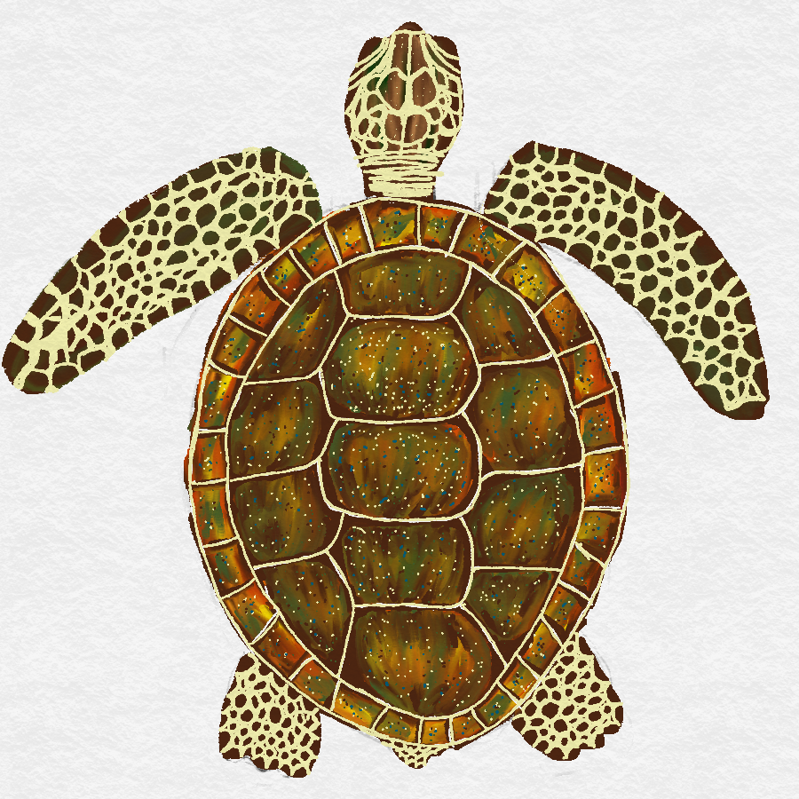 This western painted turtle was created using a combination of watercolor, acrylic, and pen.